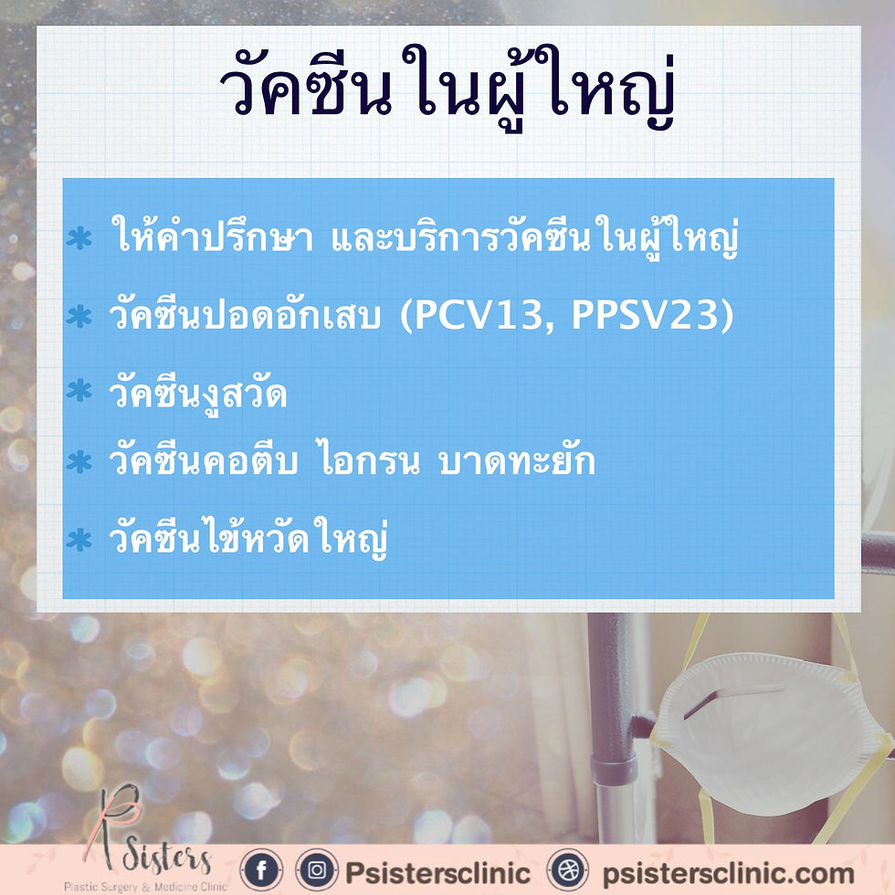 นอกจากนี้ทางคลินิกยังมีบริการฉีดวัคซีนต่างๆ แทบทุกชนิด โดยเฉพาะวัคซีนที่เหมาะกับผู้สูงอายุซึ่งมาพร้อมกับคำแนะนำอย่างละเอียดโดยคุณหมอค่ะ